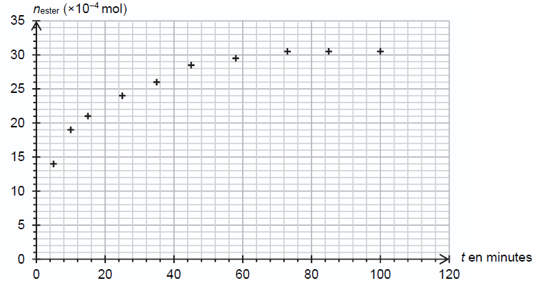 quantité de matière d’éthanoate de linalyle formé, notée n ester, au cours du temps