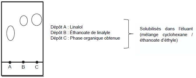 On identifie le linalol et l'éthanoate de linalyse par comparaison des rapports frontaux.