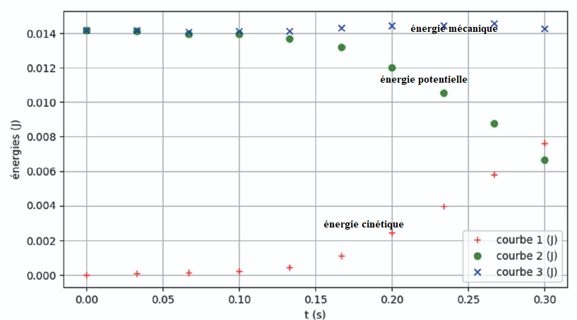 Les données précédentes ont été obtenues en étudiant le mouvement de la bille dans le repère d’espace