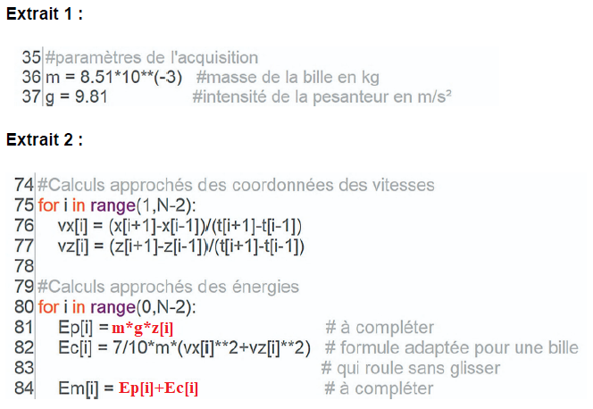 Un programme, écrit en langage Python, a permis d’obtenir les données précédentes. Deux extraits en sont donnés.