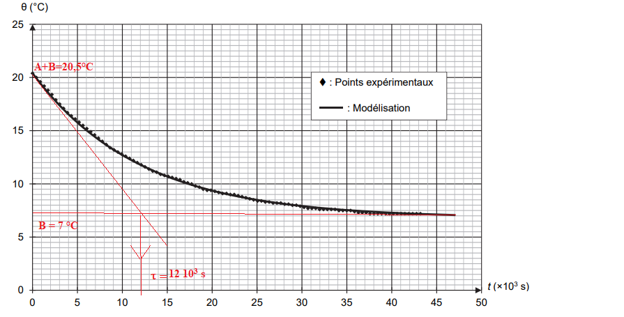 - le tracé d’une courbe de modélisation de l’évolution temporelle de la température