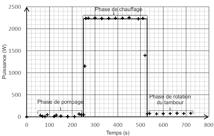 On mesure la puissance électrique consommée par un lave-linge, au cours