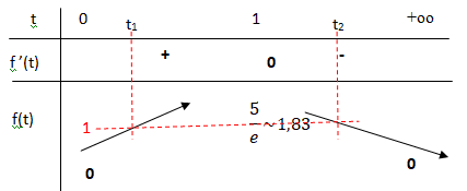 Sur [0 ; 1], f(t) est continue et strictement croissante de 0 à 1,83.