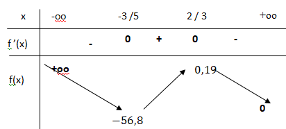 Sur ]-oo ; -3/5[, f(x) décroît de plus l'infini à -56,8 :d'après le théorème des valeurs intermédiaires, il existe un réel