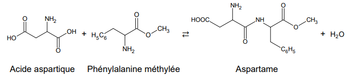 obtenir l’aspartame selon l’équation de réaction donnée en début d’exercice.