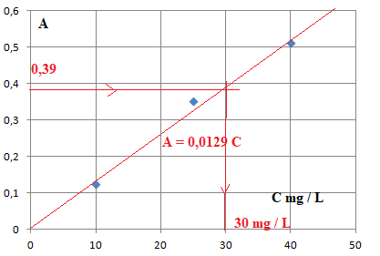 C = 0,39 / 0,0129 ~30 mg / L.