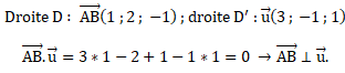 b. Démontrer que les droites D′ et D sont orthogonales.