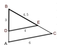 AB = AC x BD / DE = 6 x3 / 4 =4,5.