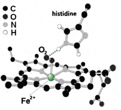 fer et une molécule d'histidine incluse dans la chaine protéique.