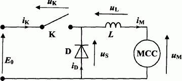 On suppose que le moteur à courant continu est commandé par un hacheur série. ![]() On a placé une bobine de forte inductance L avec le moteur. La source continue en entrée du hacheur délivre une tension de valeur E0 = 800 V. l'interrupteur K est commandé périodiquement de la façon suivante sur une période T : - il est fermé pour t compris entre 0 et t1 = aT, - il est ouvert pour t compris entre t1 et t2 = T. a est appelé rapport cyclique de hachage. On supposera que la diode D et l'interrupteur K sont idéaux. Quel composant électronique de puissance peut-on choisir pour K ? Transistor ou bien thyristor.