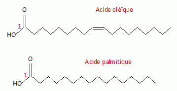brute d'un acide gras saturé puis celle d'un acide gras mono-insaturé