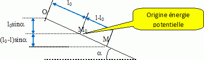 Energie mécanique : E= Ep = mg (l0 -lm)sin