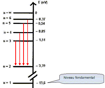 électroniques d'un niveau supérieur vers le niveau n=2. Représenter