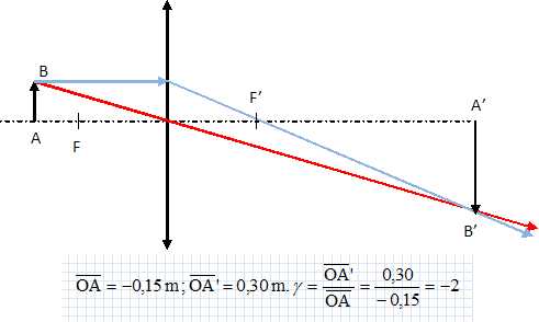 On donne f' = 10,0 cm. L'objet est à 15 cm de la lentille. L'image est