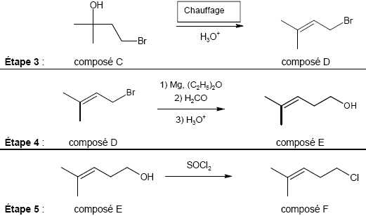 Etape 5 : modification du groupe caractéristique : OH est remplacé par Cl.