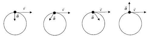 Mouvement circulaire uniforme : l'accélération est centripète ( shéma de gauche).