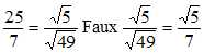2 / (7 / 2) est un nombre décimal. Faux. (2 x 2 / 7 = 4 / 7).