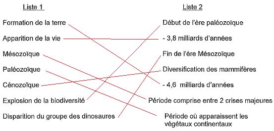 3. Relier les éléments de la liste 1 et de la liste 2 entre eux.