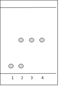 effectue une chromatographie sur couche mince. On réalise quatre