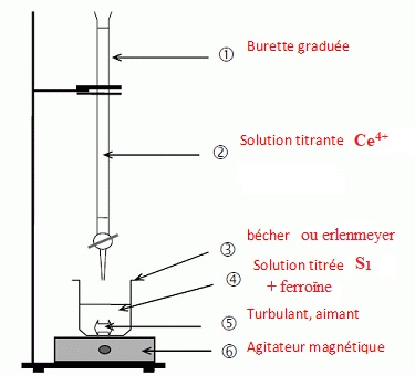 ferroïne ( indicateur coloré ). La solution titrante d'ion cérium IV a