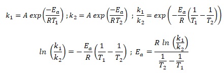 Ea =8,314 x4,219 / (3,335 10-4) = 1,05 105 J / mol.