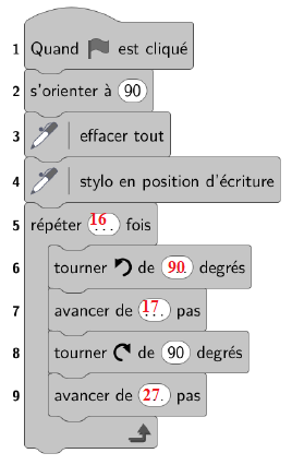 Rotation de 3 x45 = 135° dans le sens anti-horaire.