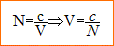 V : célérité de la lumière dans le milieu transparent (m/s), valeur à c : donc l'indice de réfraction est à 1.