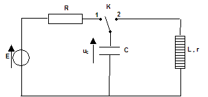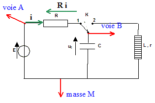Une enceinte pour chaîne hi-fi est composée de plusieurs hauts parleurs : le plus petit les sons les plus aigus et le plus gros émet les sons les plus graves. Il est donc nécessaire de ne pas les alimenter de la même manière, ce qui est réalisé à l'aide d'un montage électrique de condensateurs et de bobines et appelé filtre. Condensateurs et bobines sont des composants incontournables en électricité. Nous allons voir comment déterminer leurs caractéristiques à partir du montage ci-dessous comprenant : Un générateur de tension constante continue E = 12 V ; une résistance R = 100 W ; un interrupteur K à trois points ; un condensateur de capacité C ; une bobine d'inductance L et de résistance r Aide au calcul : 0,37 x 12 4,4 ; 0,63 x 12 7,6 ; p = 3,14 3 ; p 2 10