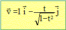 Les équations horaires d'un mouvement plan sont : x(t)=t ; y(t)=(1-t2)½. Quelle est la nature de la trajectoire ? Eliminer le temps y2 =1-t2 et t2 = x2. d'où : y2 =1-x2 ; x2 + y2 =1. cercle de centre O ( origine du repère) et de rayon R= 1. Déterminer le vecteur vitesse et sa valeur : Le vecteur vitesse est la dérivée par rapport au temps du vecteur position. Le vecteur vitesse est tangent à la trajectoire et a le sens du mouvement. dx/dt = vx = 1. dy/dt = vy = ½ (-2t)(1-t2)-½ ; vy = -t (1-t2)-½