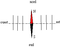 Une aiguille aimantée SN mobile autour d'un axe verticale est placée au centre d'un solénoïde. L'axe du solénoïde est perpendiculaire au plan du méridien magnétique terrestre du lieu. ![]()