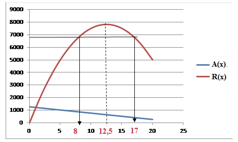 R(5) = -50 x52 +1250 x5 = 5000 €.